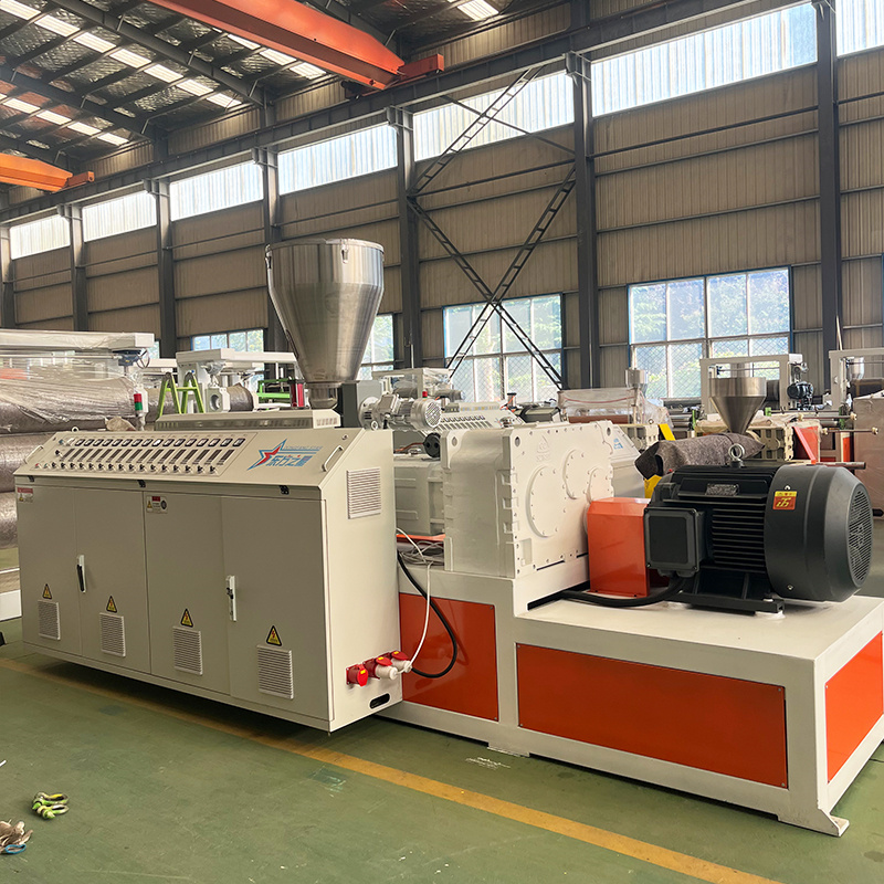 Máy đùn trục vít đôi hình nón, được trang bị các khuôn mẫu và thiết bị phụ trợ có thông số kỹ thuật khác nhau được sản xuất bởiThanh Đảo Eaststar Plastic Machinery Co., Ltd.,có thể trực tiếp gia công bột PVC thành các sản phẩm nhựa như ống, tấm, profile.