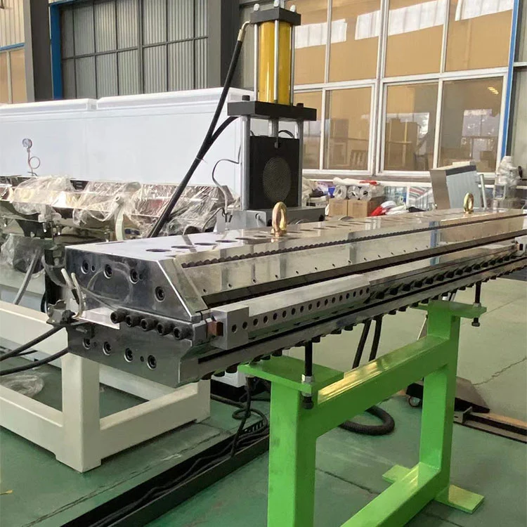 Kênh dòng chảy đầu ở dạng kênh dòng máy móc áo quần áo. Đầu được làm bằng thép hợp kim chất lượng cao 5Crnimo, và được đánh bóng sau khi mạ crôm; Môi chết trên được đẩy bằng cách điều chỉnh vi mô.
