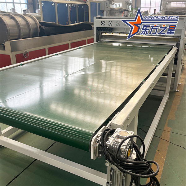 Máy ép đùn tấm nhựa PVC bao gồm máy đùn, khuôn, lịch, máy kéo, máy cắt, bệ băng tải